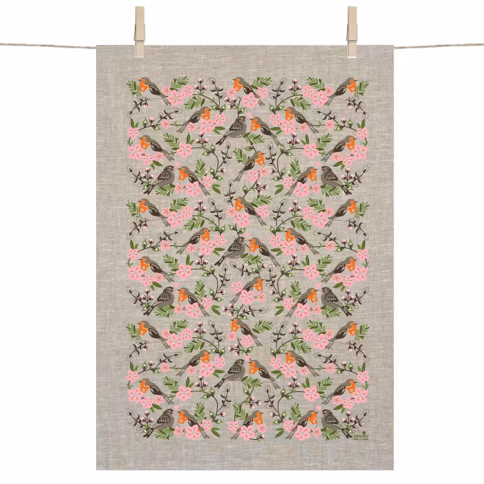 Kökshandduk Spring Bird – rödhake & gråsparv