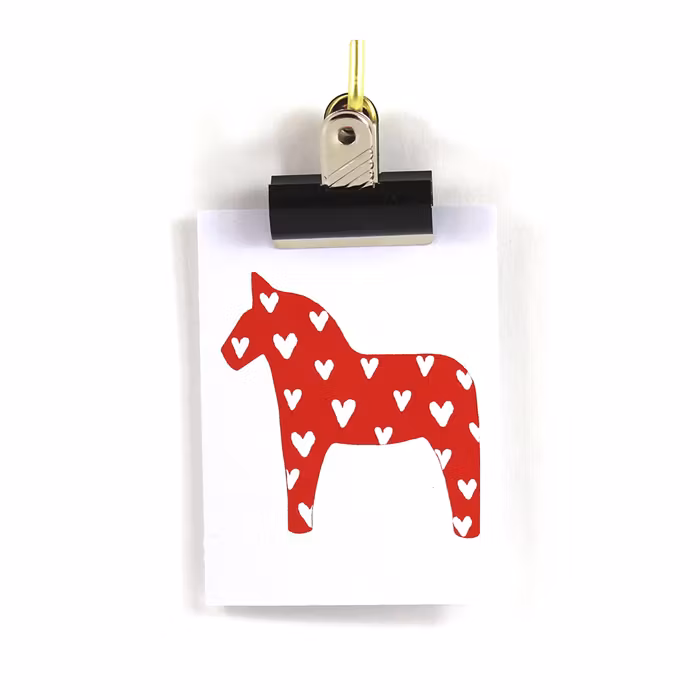 Våra små dubbelvikta kort mäter 80x60mm och är designat av konstnären Anneli Asplund, inspirerad av Sverige och tryckt stolt i Sverige på miljövänligt papper.