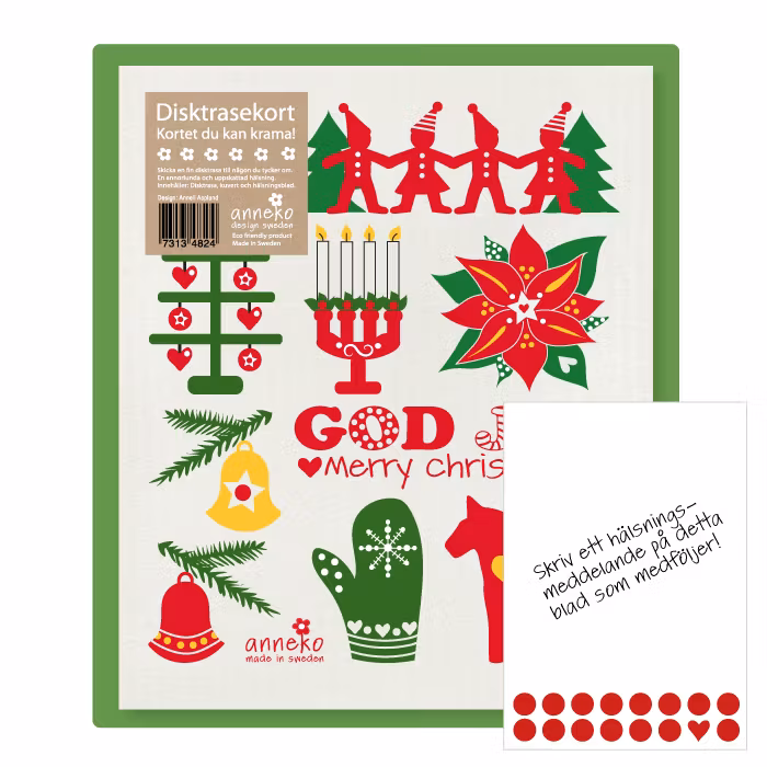 Sprid julglädje med ett disktrasekort, den perfekta kombinationen av hälsning och hållbar vardagsprodukt! Våra disktrasekort med stämningsfulla julmotiv, designade av Anneli Asplund, är både vackra att ge och praktiska att använda.