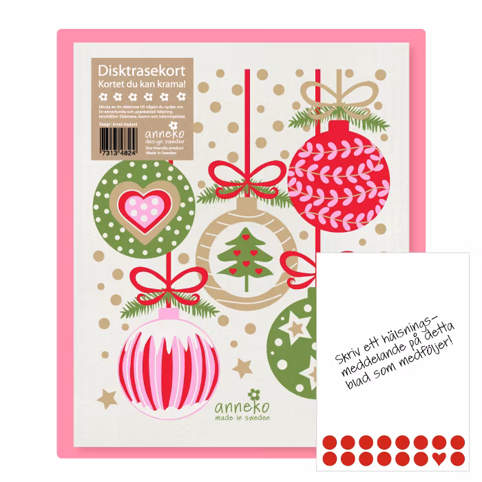 Sprid julglädje med ett disktrasekort, den perfekta kombinationen av hälsning och hållbar vardagsprodukt! Våra disktrasekort med stämningsfulla julmotiv, designade av Anneli Asplund, är både vackra att ge och praktiska att använda.