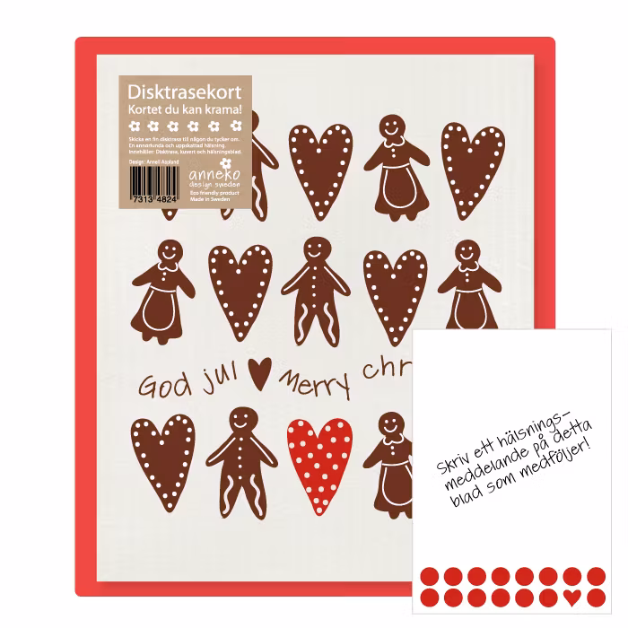 Sprid julglädje med ett disktrasekort, den perfekta kombinationen av hälsning och hållbar vardagsprodukt! Våra disktrasekort med stämningsfulla julmotiv, designade av Anneli Asplund, är både vackra att ge och praktiska att använda.